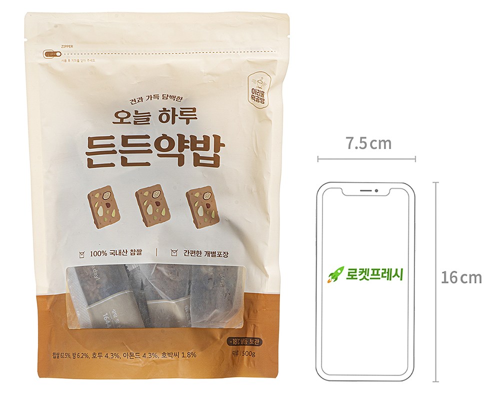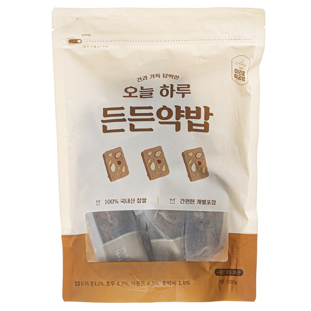 찹쌀로 지어 쫀득한 밥에 다채로운 속 재료가 콕콕 박힌 약밥이에요. 밤당조림, 호두, 아몬드, 대추채 등이 조화롭게 어우러져 달콤하고 고소한 풍미를 자아내지요. 해동한 후 바로 간식으로 드셔도 좋고, 전자레인지로 데워 따뜻하게 드셔도 좋아요.