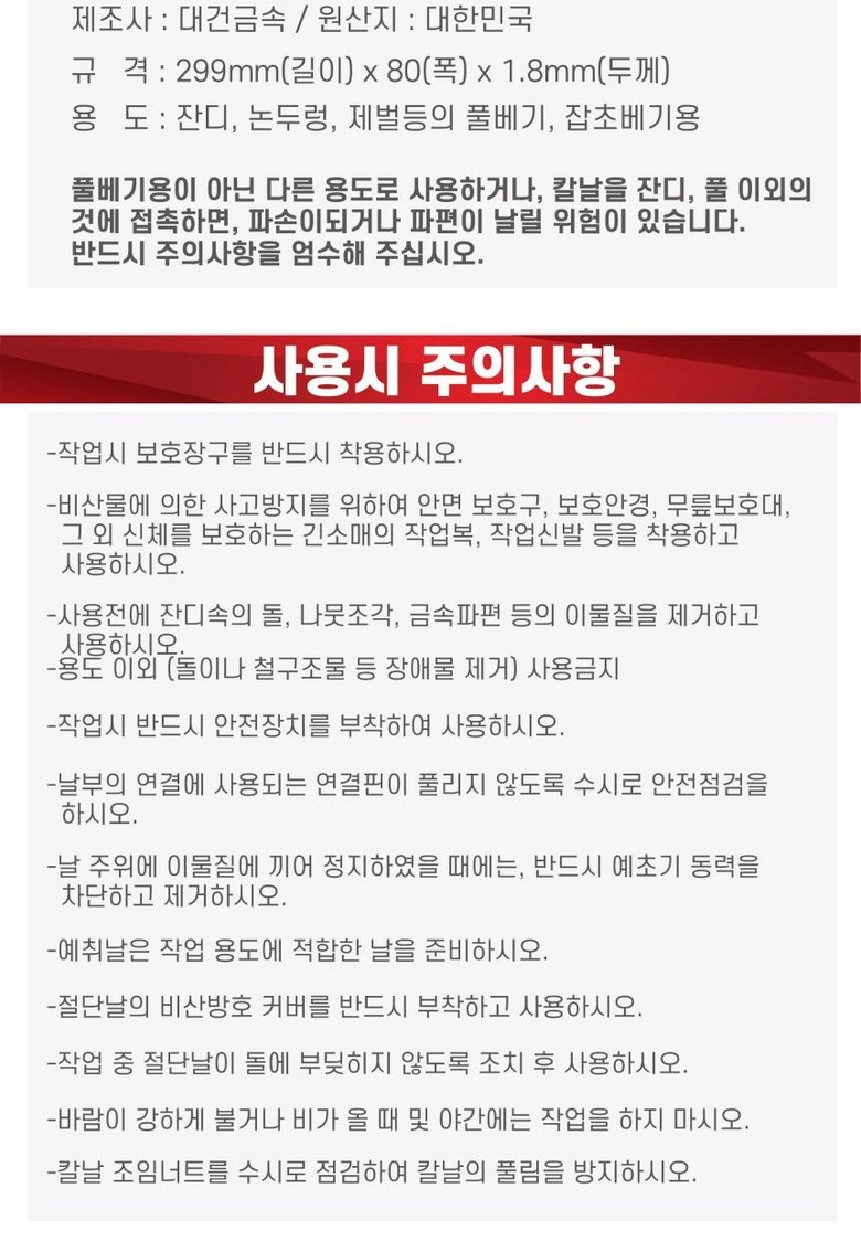 | 제조국(원산지) | 국산 | 제조자(수입자) | 대건금속 |