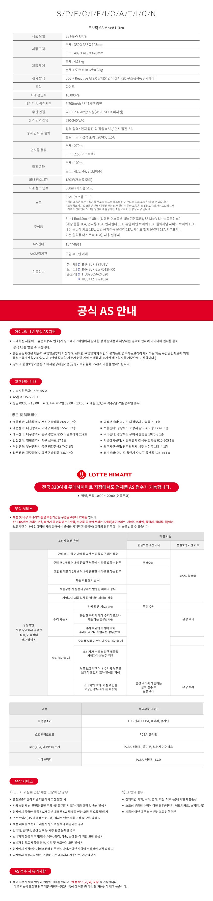 | 출시년월 | 2024년 4월 | 제조자(수입자) | Beijing Roborock Technology Co., Ltd. / 팅크웨어모바일 |