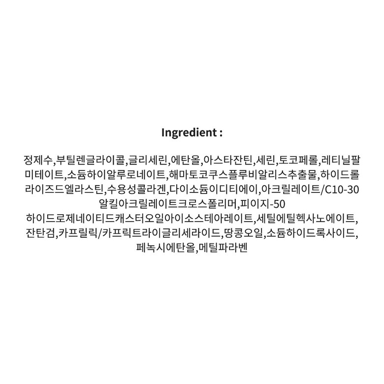 ✔ 히알루론산, 엘라스틴, 아스타잔틴, 글리세린 함유