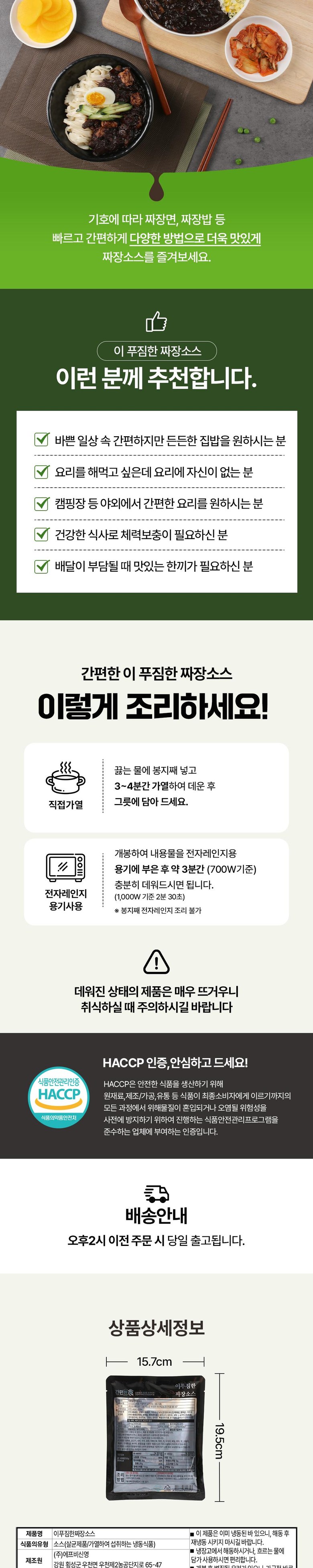 | 품목 또는 명칭 | 이 푸짐한 짜장소스 | 포장단위별 내용물의 용량(중량),수량,크기 | 250g,1 |