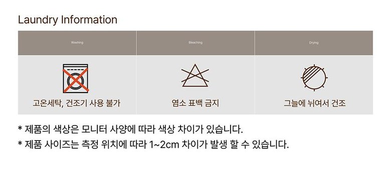 | 제조국 | 중국 | 세탁방법 및 취급시 주의사항 | 세탁망에 넣어 세탁해주세요 |