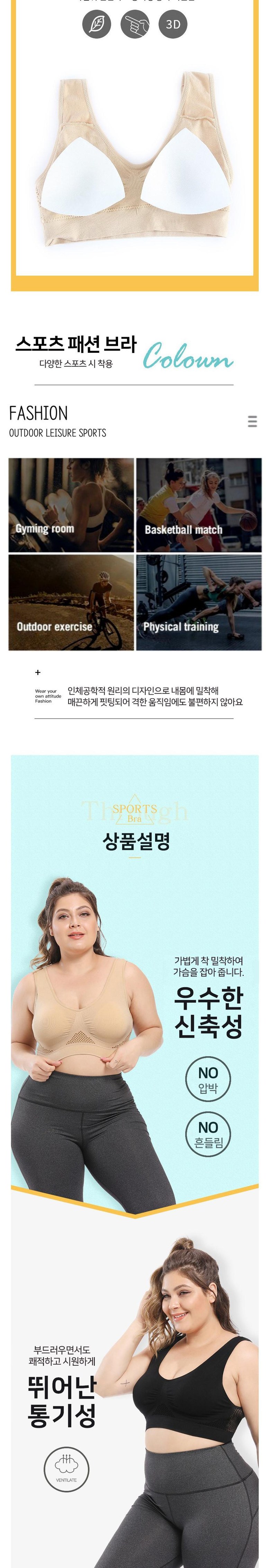 - 스포츠브라 디자인: 심리스/누디