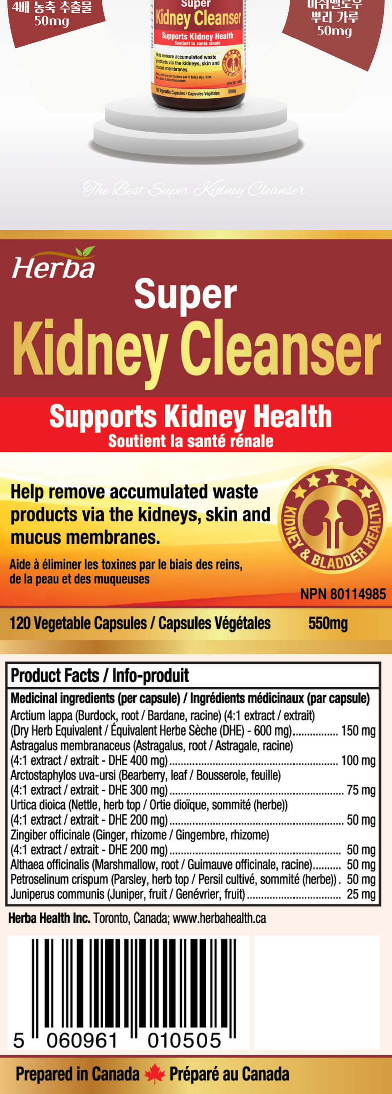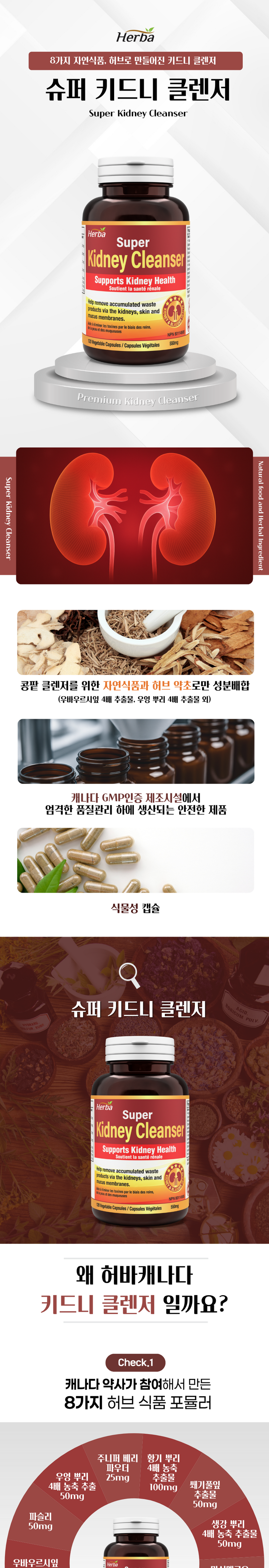 | 제품명 | 콩팥 신장 클렌즈 120식물성캡슐 키드니 클렌저 허바캐나다 | 제조업소의 명칭과 소재지 | Herba Health Inc / CANADA |