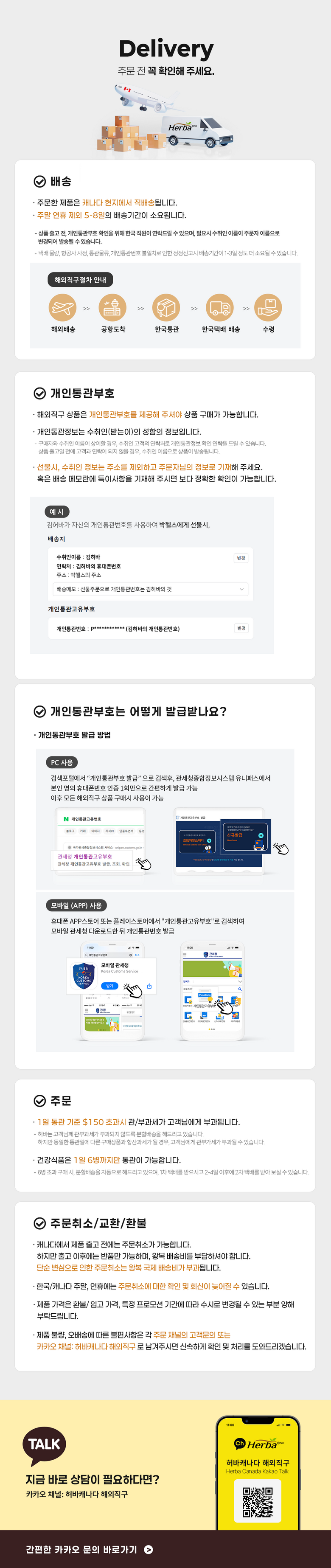 - 주문일 기준 동일 판매자 총 구매 금액이 면세 한도 초과 시 관부가세가 부과될 수 있습니다.