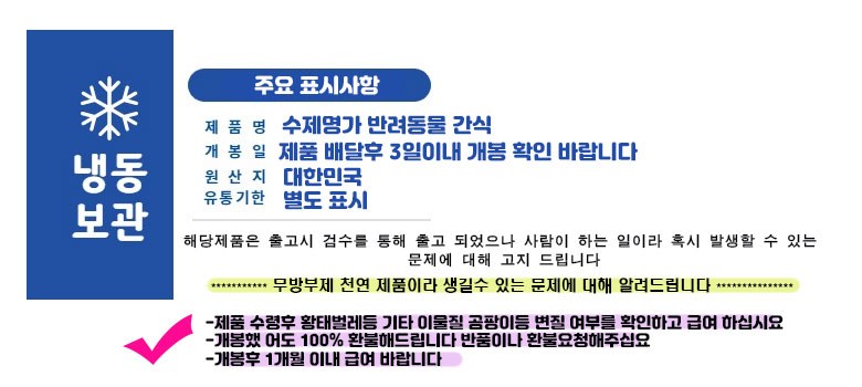 | 제조국(원산지) | 대한민국 | 제조자(수입자) | 수제명가 |