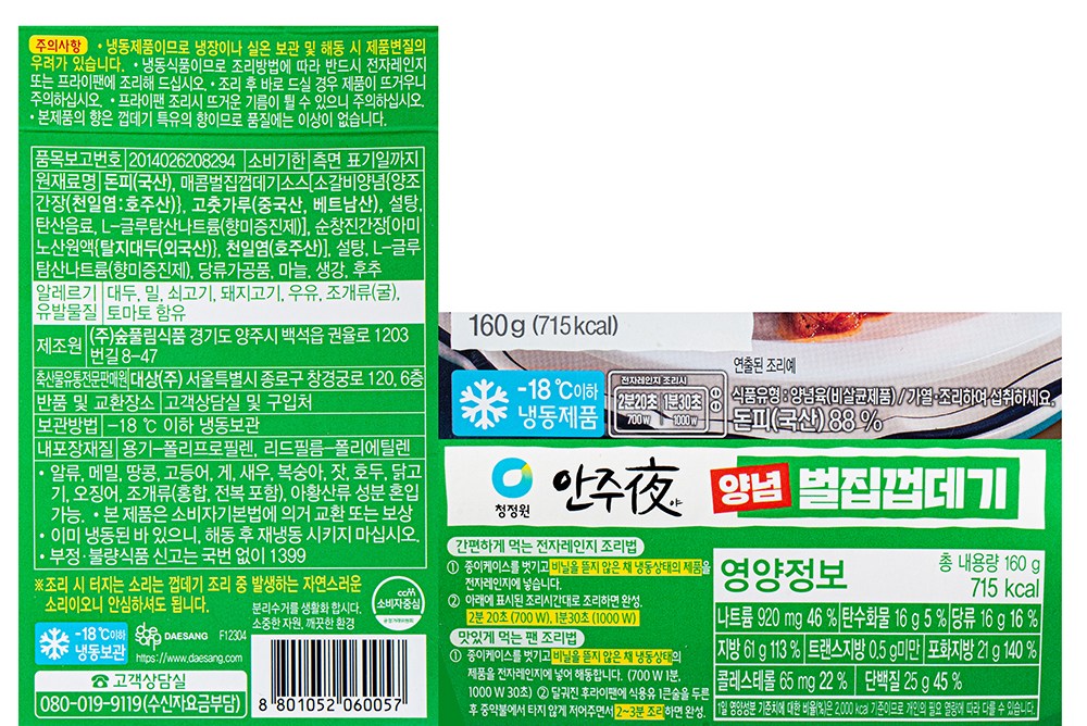| 생산자 및 소재지 | 컨텐츠 참조 | 제조연월일, 소비기한 또는 품질유지기한 | 업데이트 예정 |