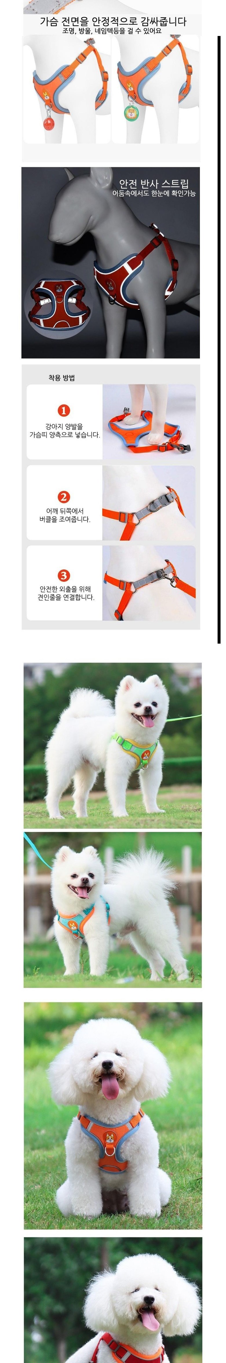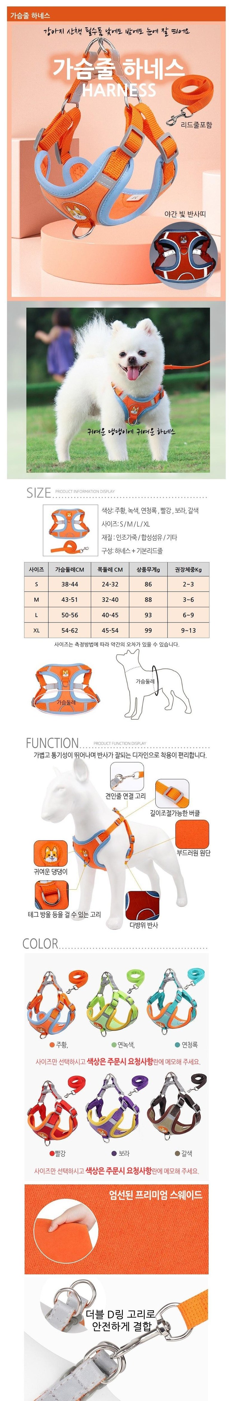 화니행복마트 하네스 H형 앞섬방지 반사 리드줄 세트