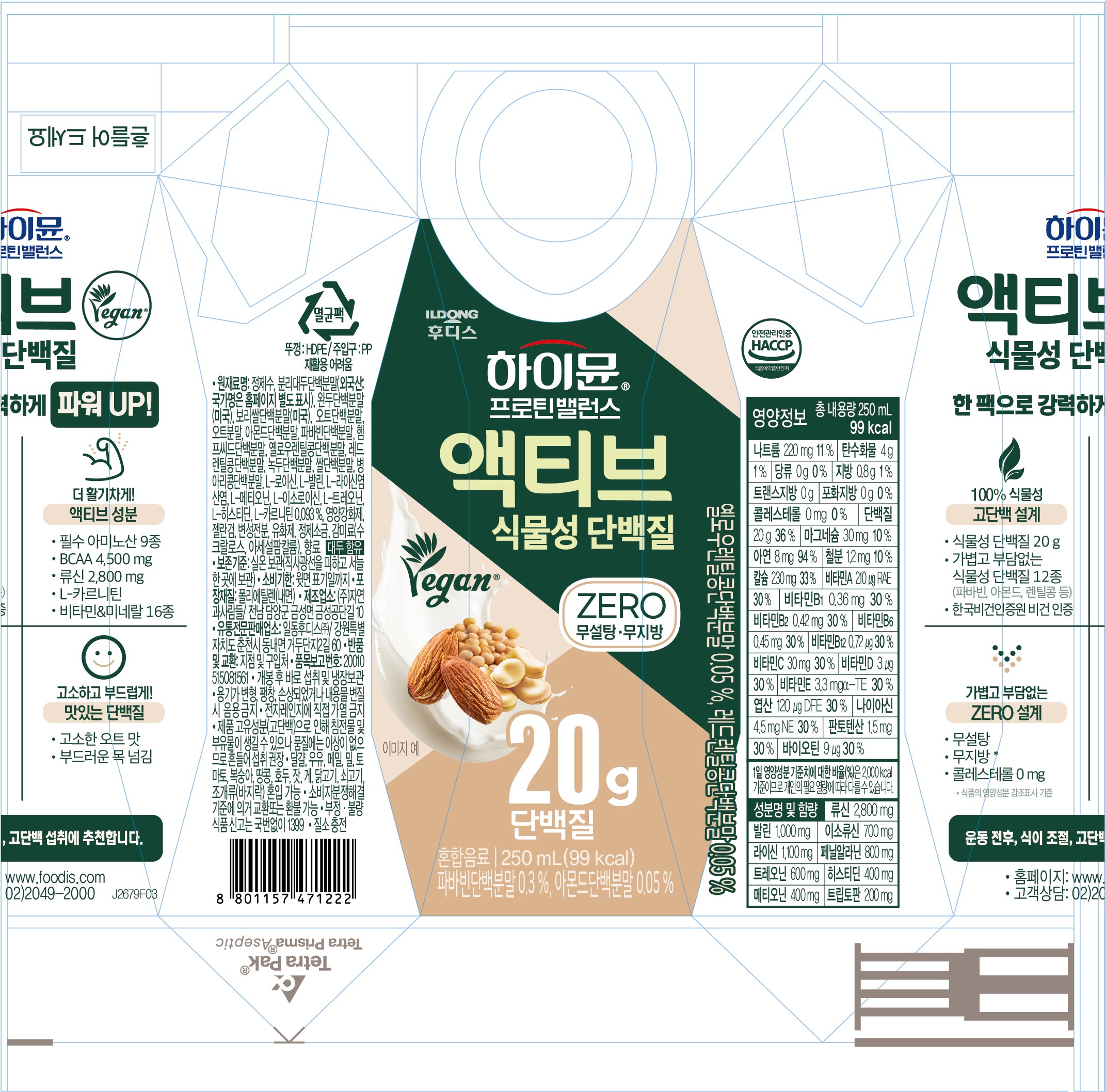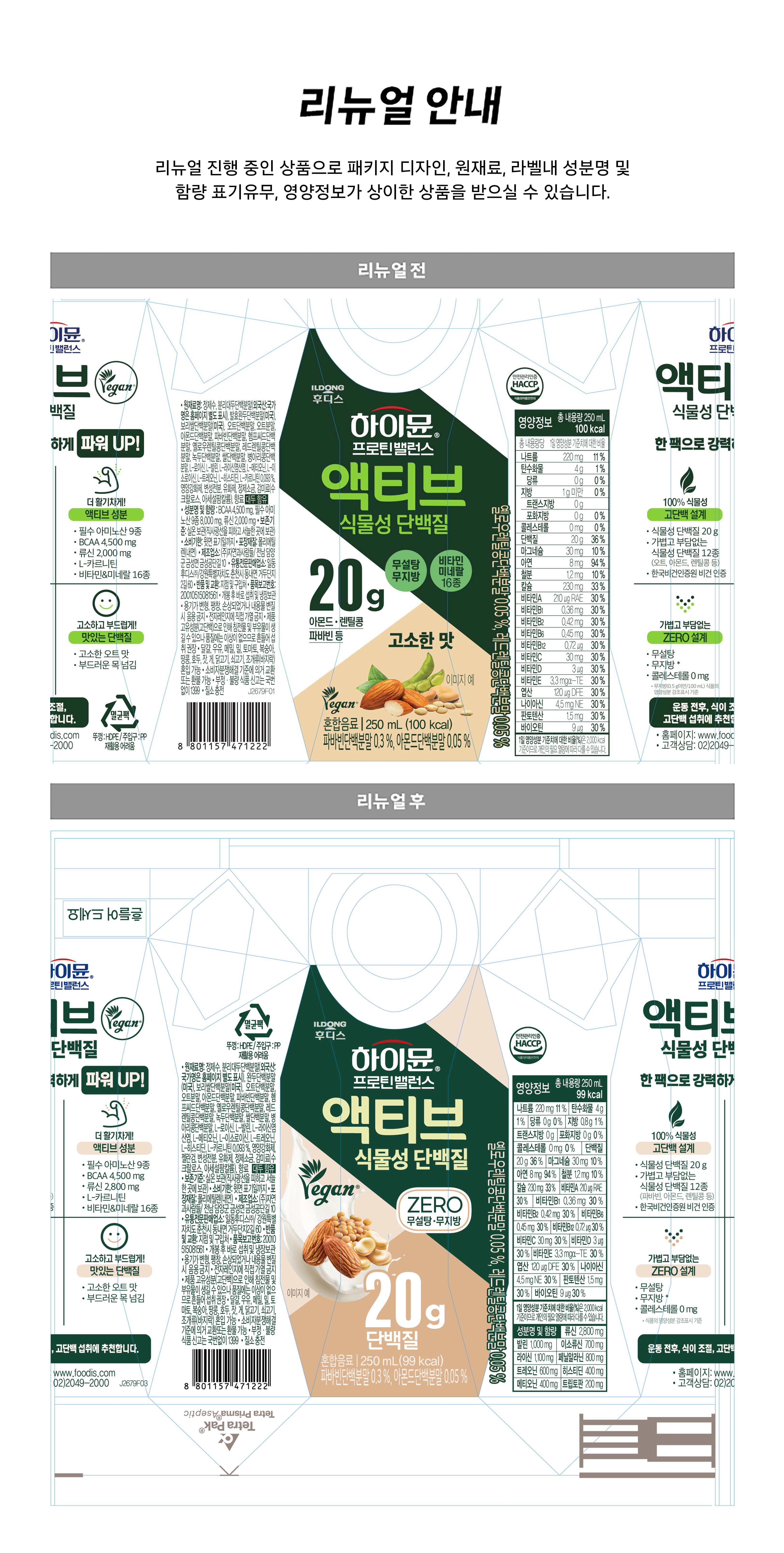 | 제품명 | 하이뮨 프로틴 밸런스 액티브 식물성 단백질 | 식품의 유형 | 혼합음료 |