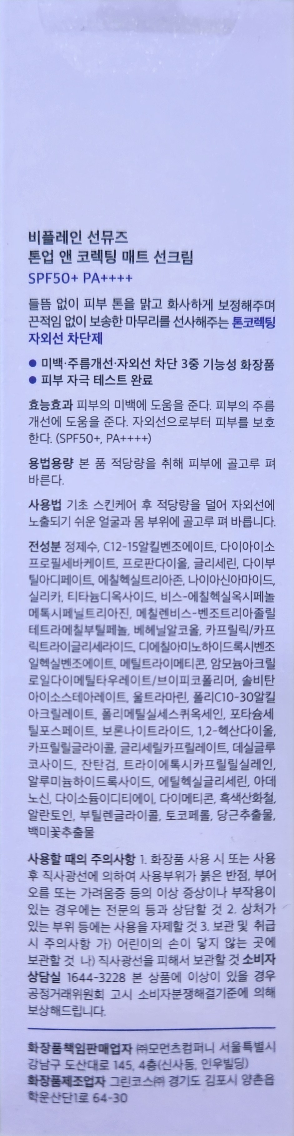 | 화장품제조업자, 화장품책임판매업자 및 맞춤형화장품판매업자 | 그린코스(주) / (주)모먼츠컴퍼니 | 제조국 | 대한민국 |