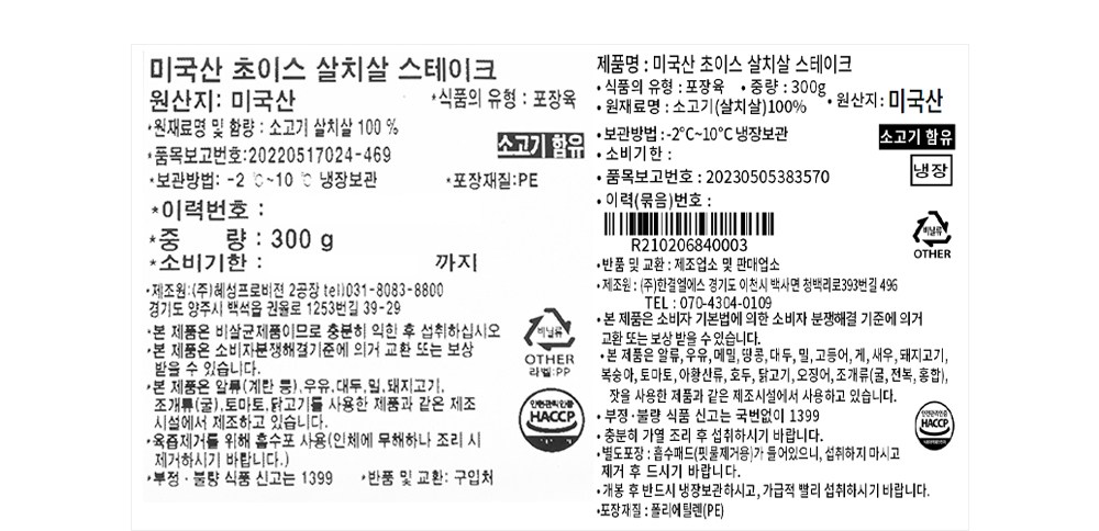 | 제조연월일, 소비기한 또는 품질유지기한 | 소비기한(또는 유통기한) : 2026년 03월 07일 이거나 그 이후인 상품 제조년월일 : 2026년 02월 26일 이후인 제조상품 | 세부 품목군별 표시사항 | 축산물 등급표시 : 해당 없음 / 이력번호 표시유무 : 이력번호 표시제품임 |