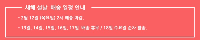 | 교환/반품 신청 기준일 | ㆍ단순변심에 의한 교환/반품은 제품 수령 후 7일 이내까지, 교환/반품 제한사항에 해당하지 않는 경우에만 가능 (배송비용과 교환/반품 비용 왕복배송비 고객부담) ㆍ상품의 내용이 표시·광고의 내용과 다른 경우에는 상품을 수령한 날부터 3개월 이내, 그 사실을 안 날 또는 알 수 있었던 날부터 |
