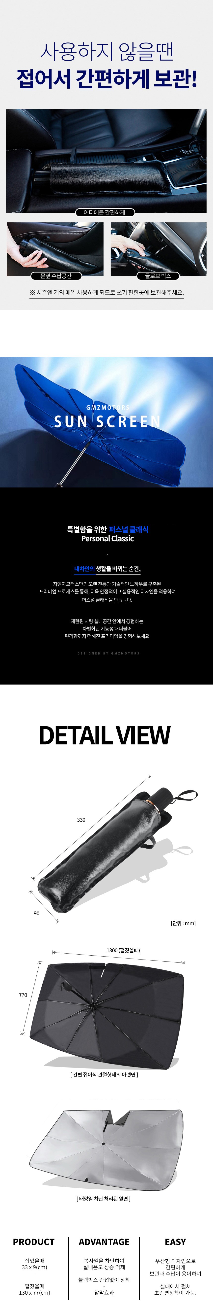 | 품명 및 모델명 | 지엠지모터스 차량용 햇빛가리개 우산형 블랙박스 업그레이드형 V 개방형 대형 사이즈 | 동일모델 출시년월 | 2024.4 |