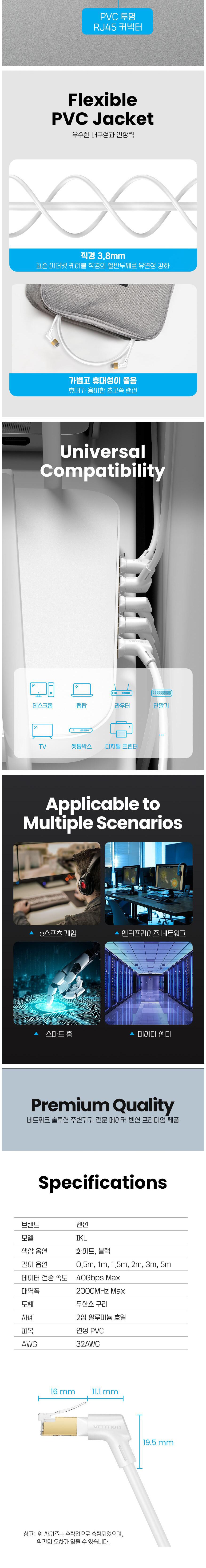 | 품명 및 모델명 | 벤션 CAT8 기가 랜선 초고속 인터넷 360도 회전 꺽임형 랜케이블 화이트 1개 0.5m | 인증/허가 사항 | 해당없음 |