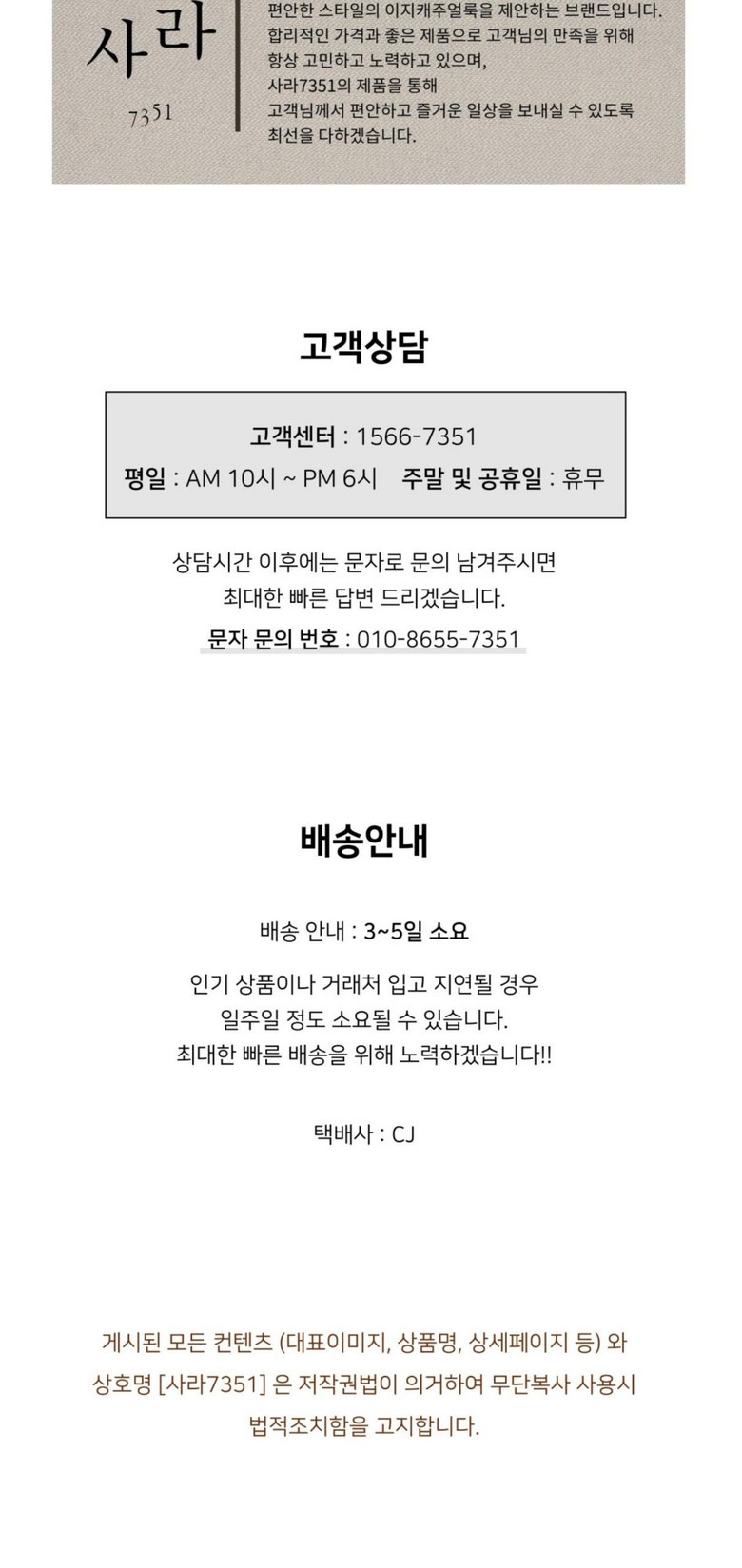 | 치수 | 상품 상세페이지 참조 | 제조자(수입자) | 사라7351 |