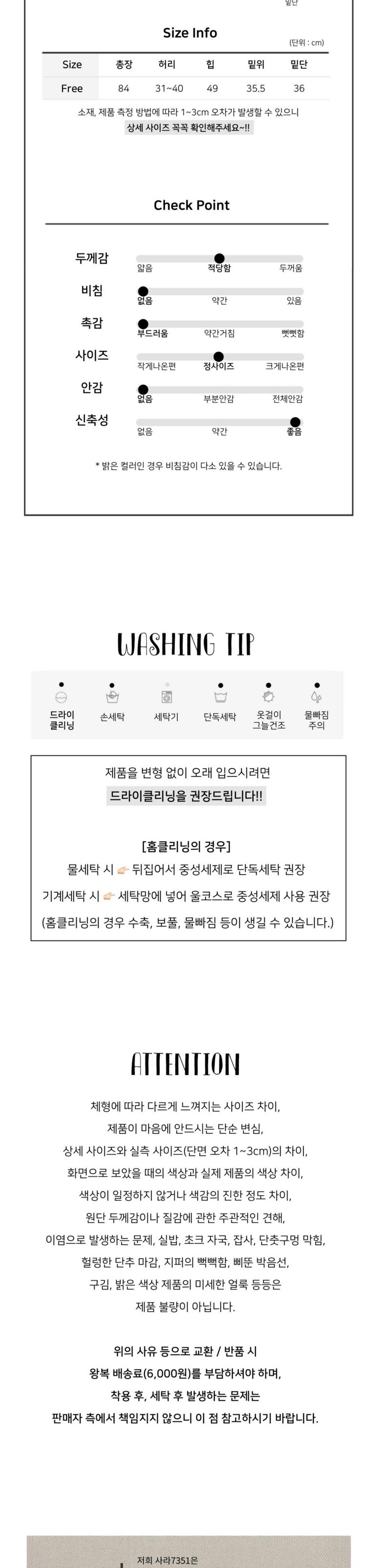 - ㆍ교환/반품에 관한 일반적인 사항은 판매자가 제시사항보다 관계법령이 우선합니다.