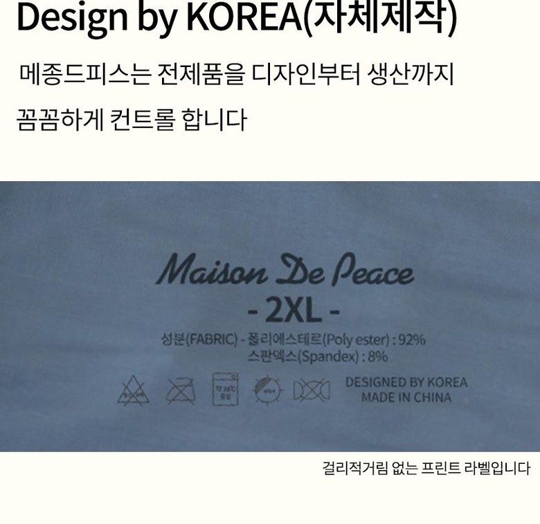 | 치수 | L(90~95),XL(100),2XL(105),3XL(110) | 제조자(수입자) | 메종드피스 |