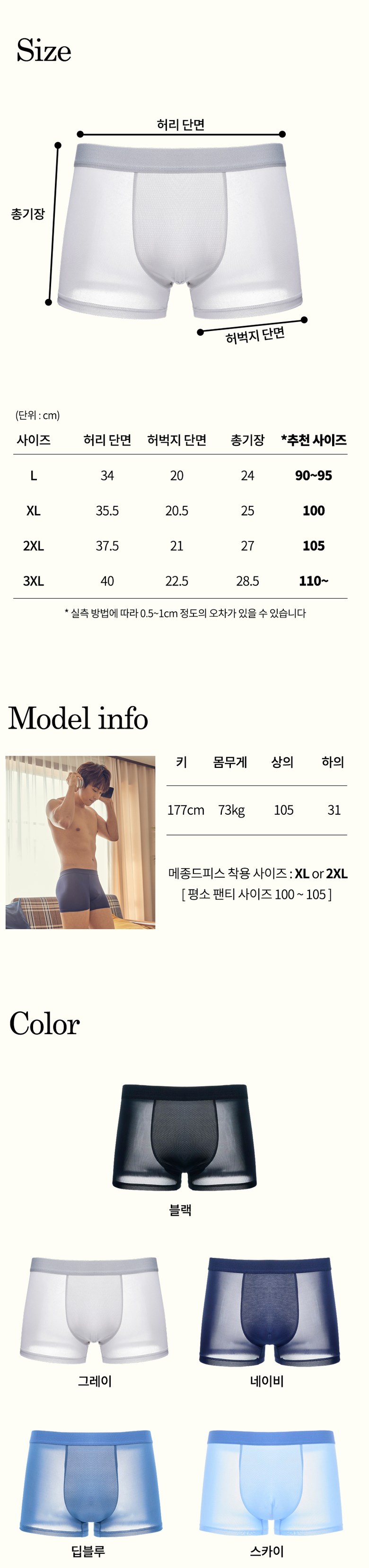 | 제품 소재 | 폴리에스터 92%,스판덱스 8% | 색상 | 블랙,네이비,그레이,딥블루,스카이 |