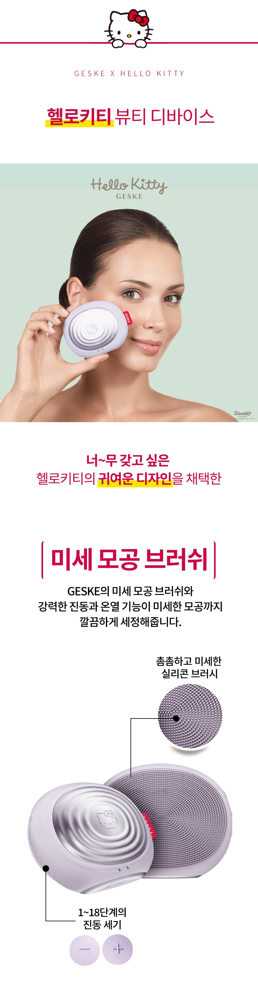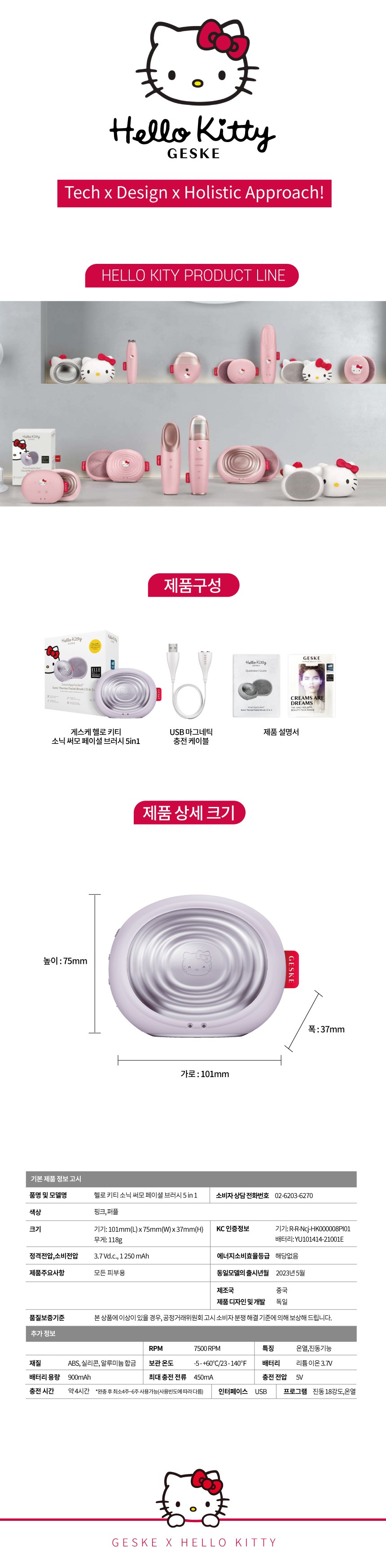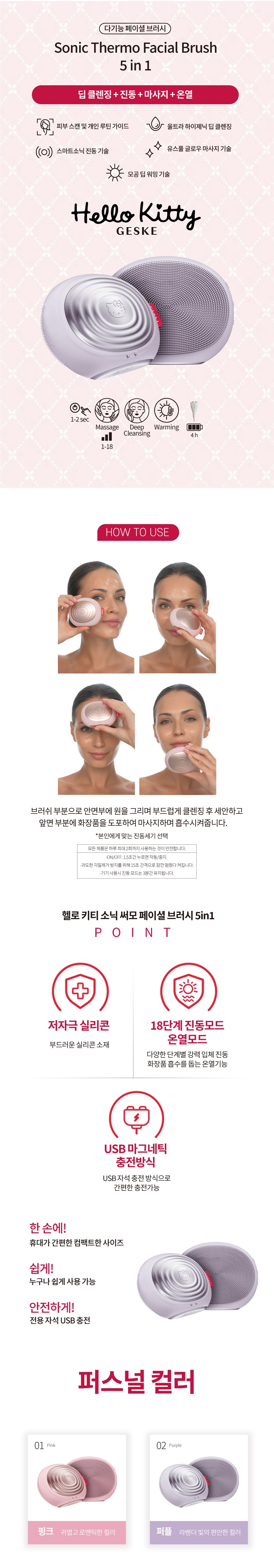| 품명 및 모델명 | 헬로 키티 써모 페이셜 브러시 5 in 1 / HK000008PU01(Hello Kitty Purple) | KC 인증정보 | 본품 : R-R-Ncj-HK000008PI01 / 내장 배터리: YU101414-21001E |