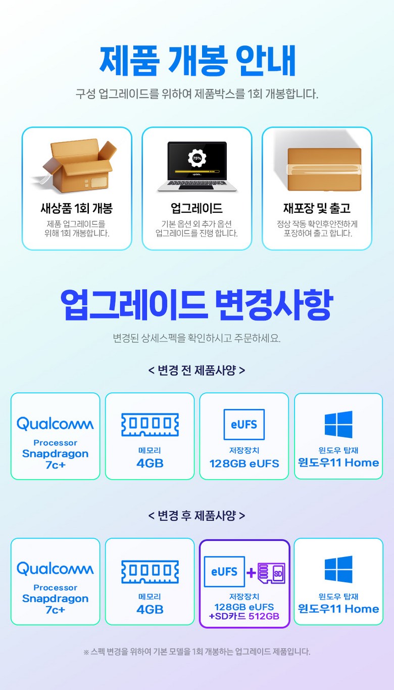 - ㆍ제조사의 사정 (신모델 출시 등) 및 부품 가격 변동 등에 의해 무료 교환/반품으로 요청하는 경우