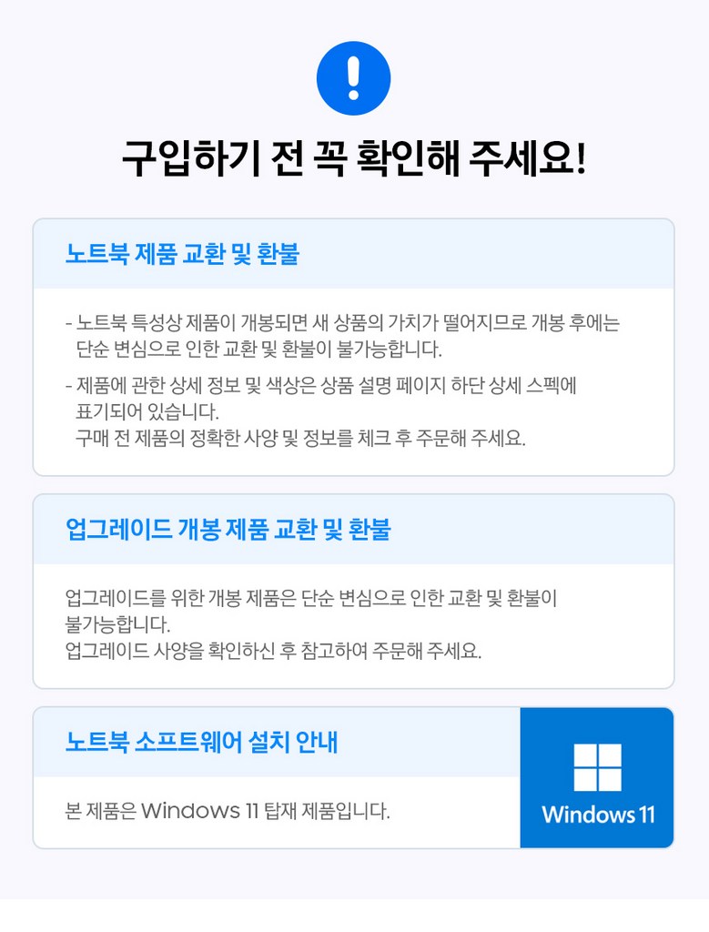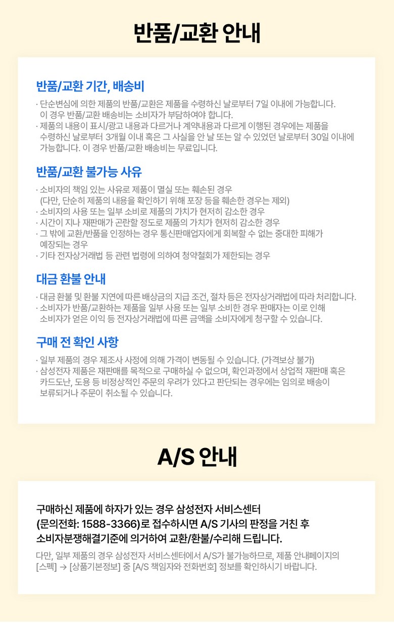 - ㆍ교환/반품에 관한 일반적인 사항은 판매자가 제시사항보다 관계법령이 우선합니다.