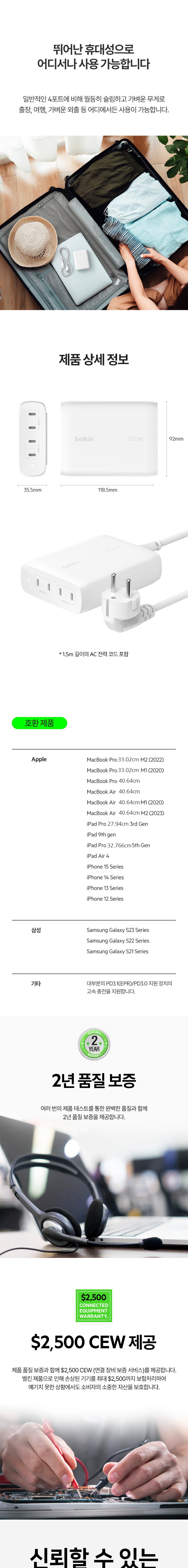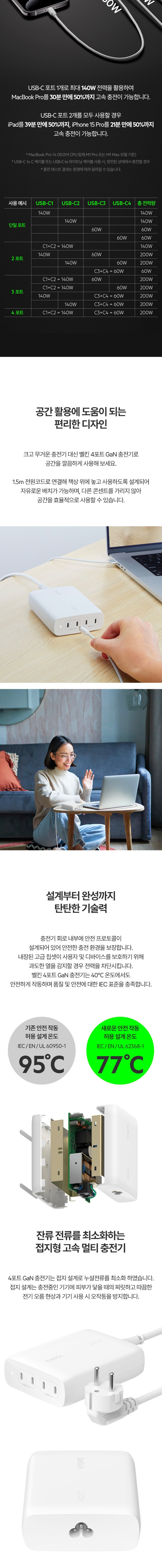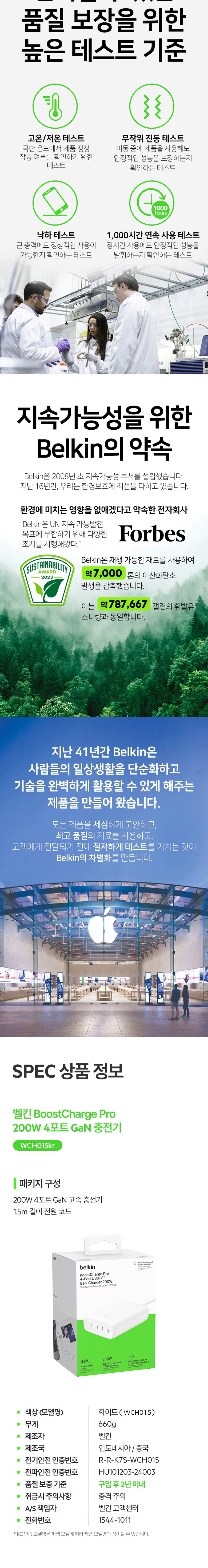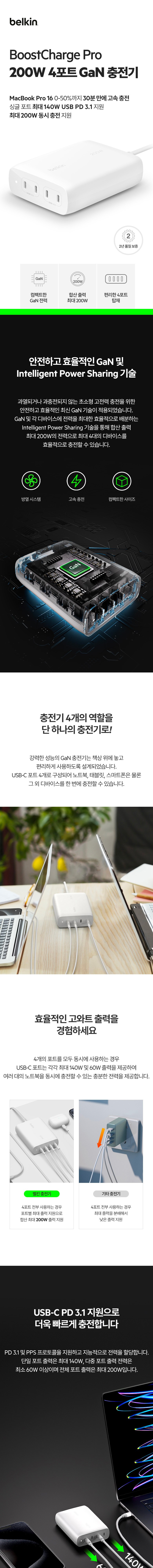 | 품명 및 모델명 | 벨킨 부스트업 프로 200W C타입 4포트 GaN PD 3.1 맥북 충전 PPS 고속 충전기 / WCH015 | KC 인증정보 | HU101203-24003 / R-R-K7S-WCH015 |