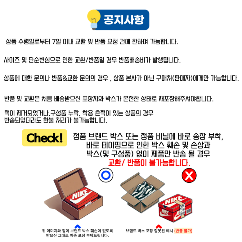 - ㆍ교환/반품에 관한 일반적인 사항은 판매자가 제시사항보다 관계법령이 우선합니다.