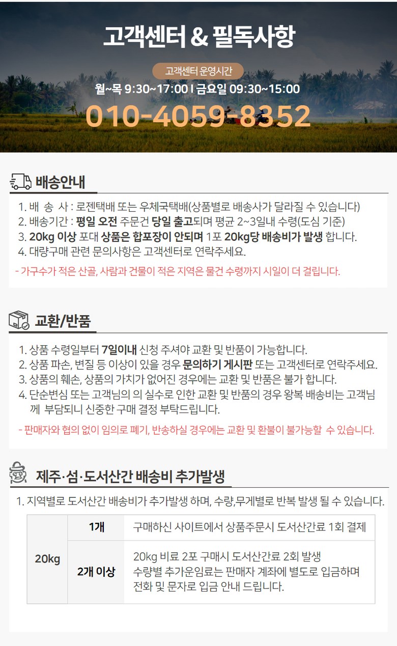 | 배송방법 | 순차배송 | 배송비 | 무료배송 · 도서산간 추가 배송비 - 제주 지역: 4,000원 - 도서산간 지역: 4,000원 |