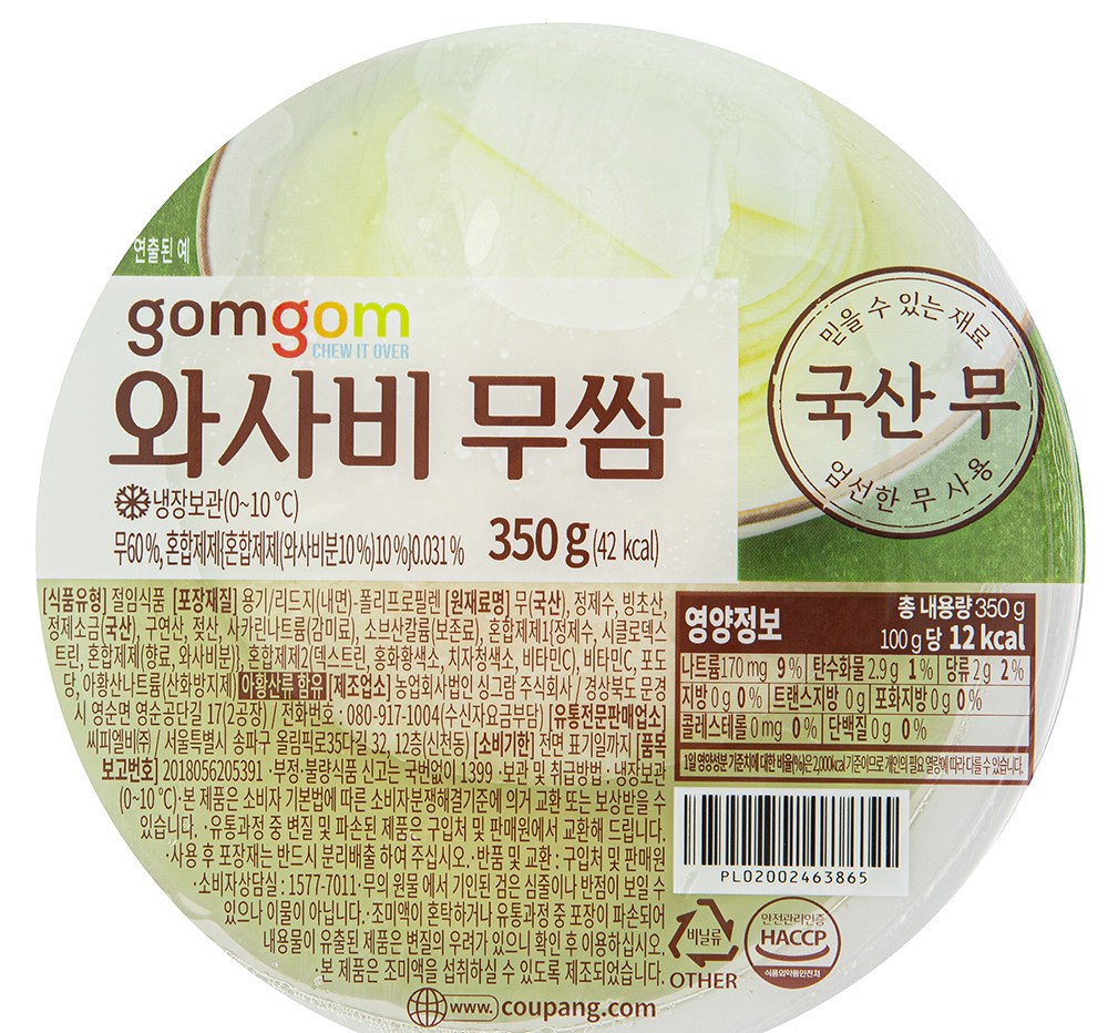 | 제품명 | 와사비 무쌈 | 식품의 유형 | 절임식품 |
