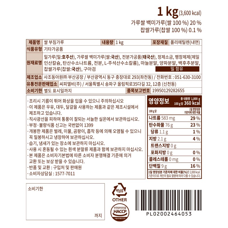 | 제품명 | 쌀 부침가루 | 식품의 유형 | 컨텐츠 참조 |