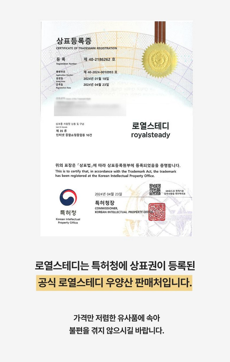 | 치수 | 상품 상세페이지 참조 | 제조자(수입자) | 로열스테디 협력사(로열스테디) |