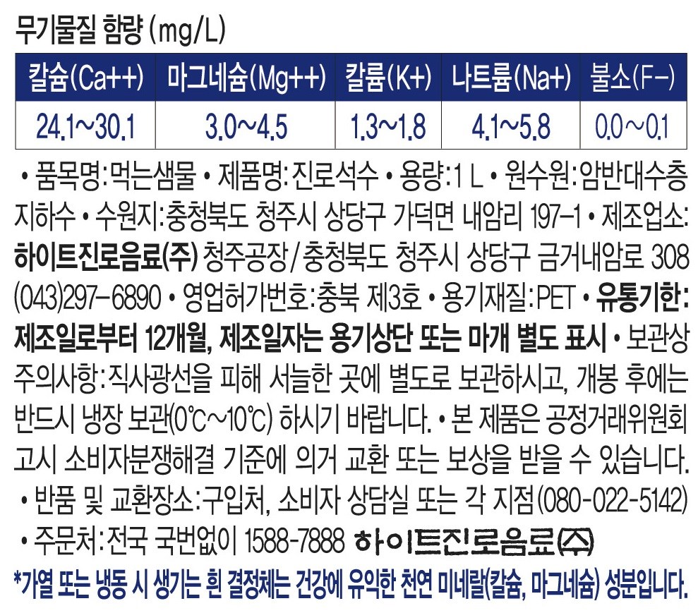 | 생산자 및 소재지 | 컨텐츠 참조 | 제조연월일, 소비기한 또는 품질유지기한 | 소비기한(또는 유통기한) : 2026년 06월 02일 이거나 그 이후인 상품 제조년월일 : 2025년 06월 03일 이후인 제조상품 |