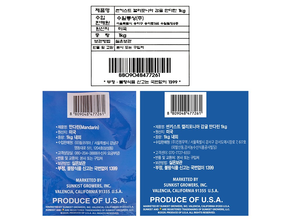 | 제조연월일, 소비기한 또는 품질유지기한 | 제조년월일 : 2026년 04월 22일 이후인 제조상품 | 세부 품목군별 표시사항 | 농수산물 : 유전자변형(해당 없음) / 지리적 표시사항(해당 없음) |