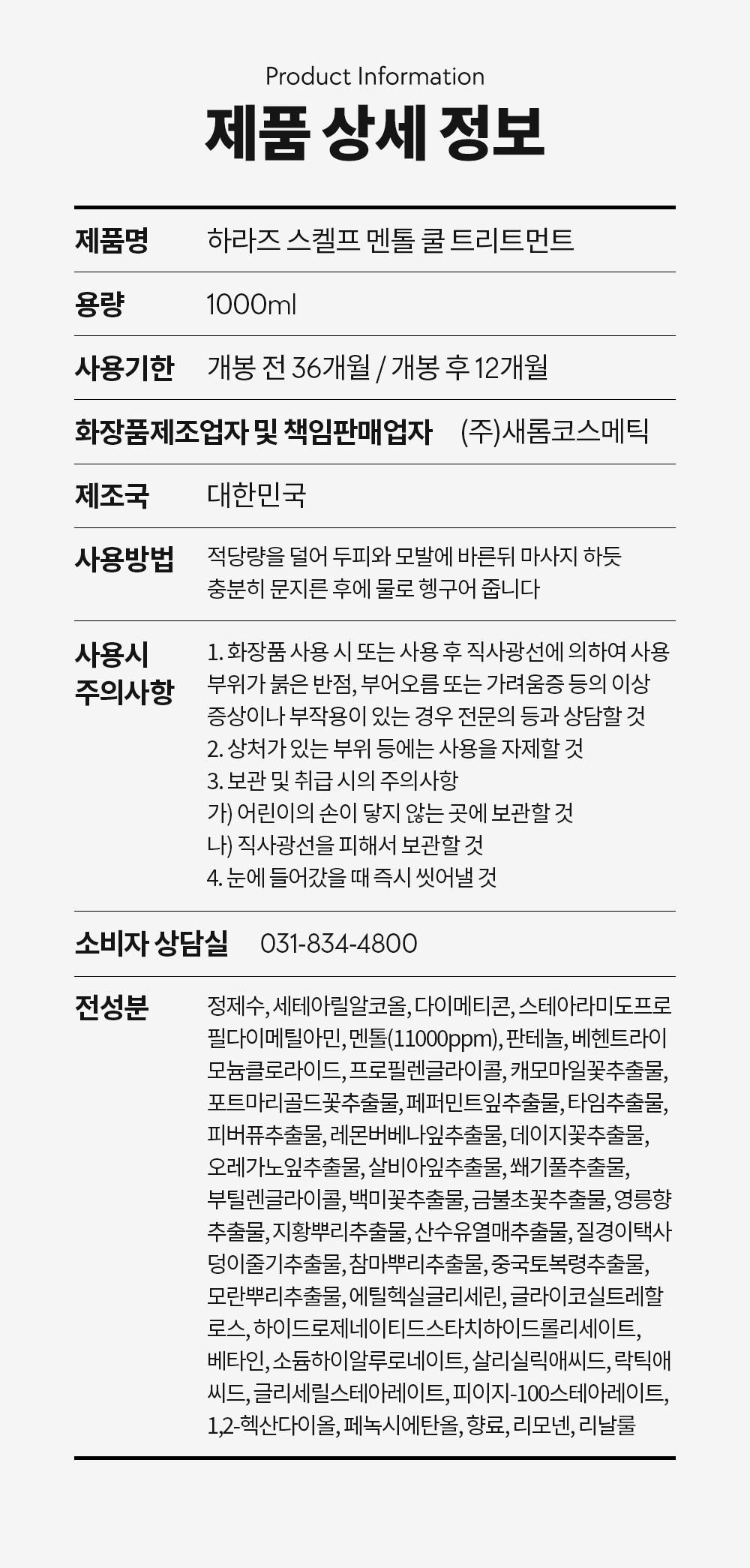 | 용량(중량) | 1000ml | 제품 주요 사양 | 모든모발용 |