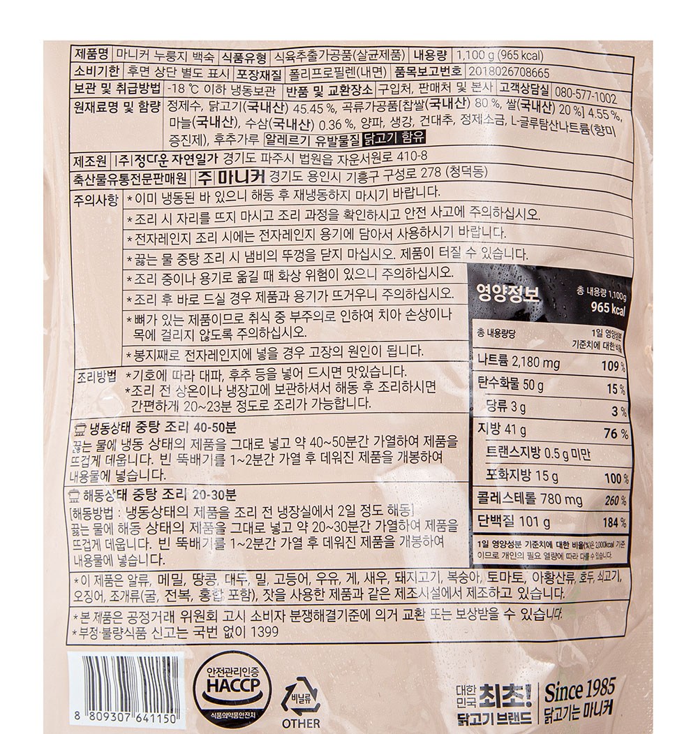 닭고기, 수삼, 생강, 건대추 함유