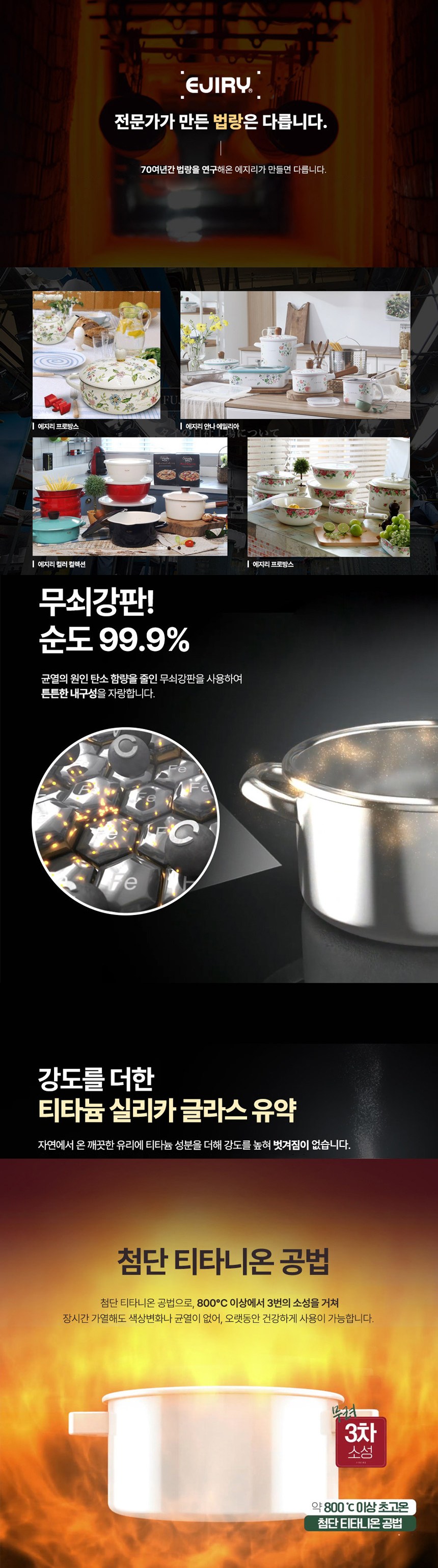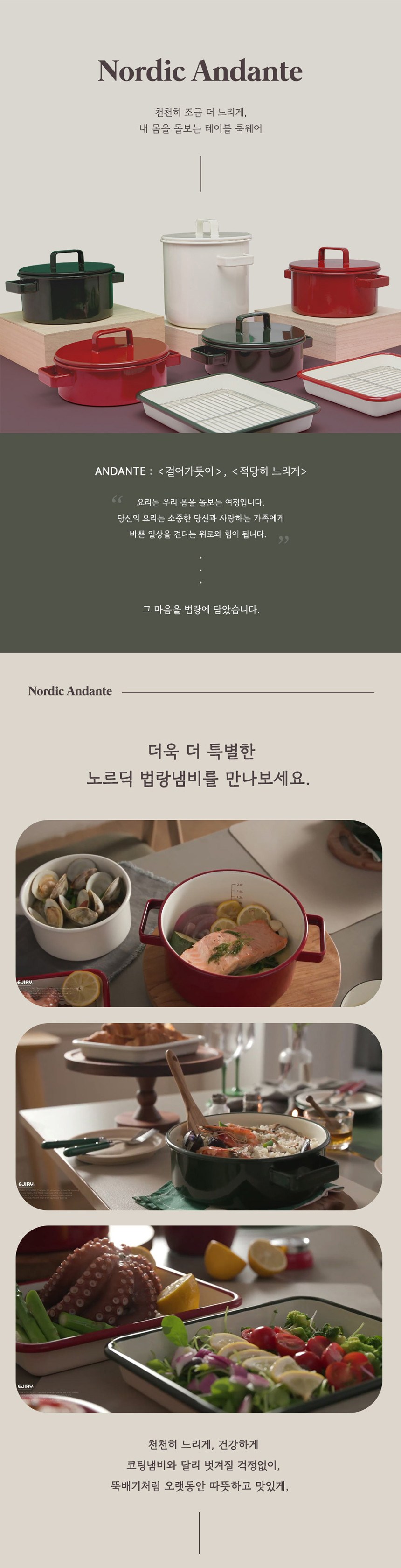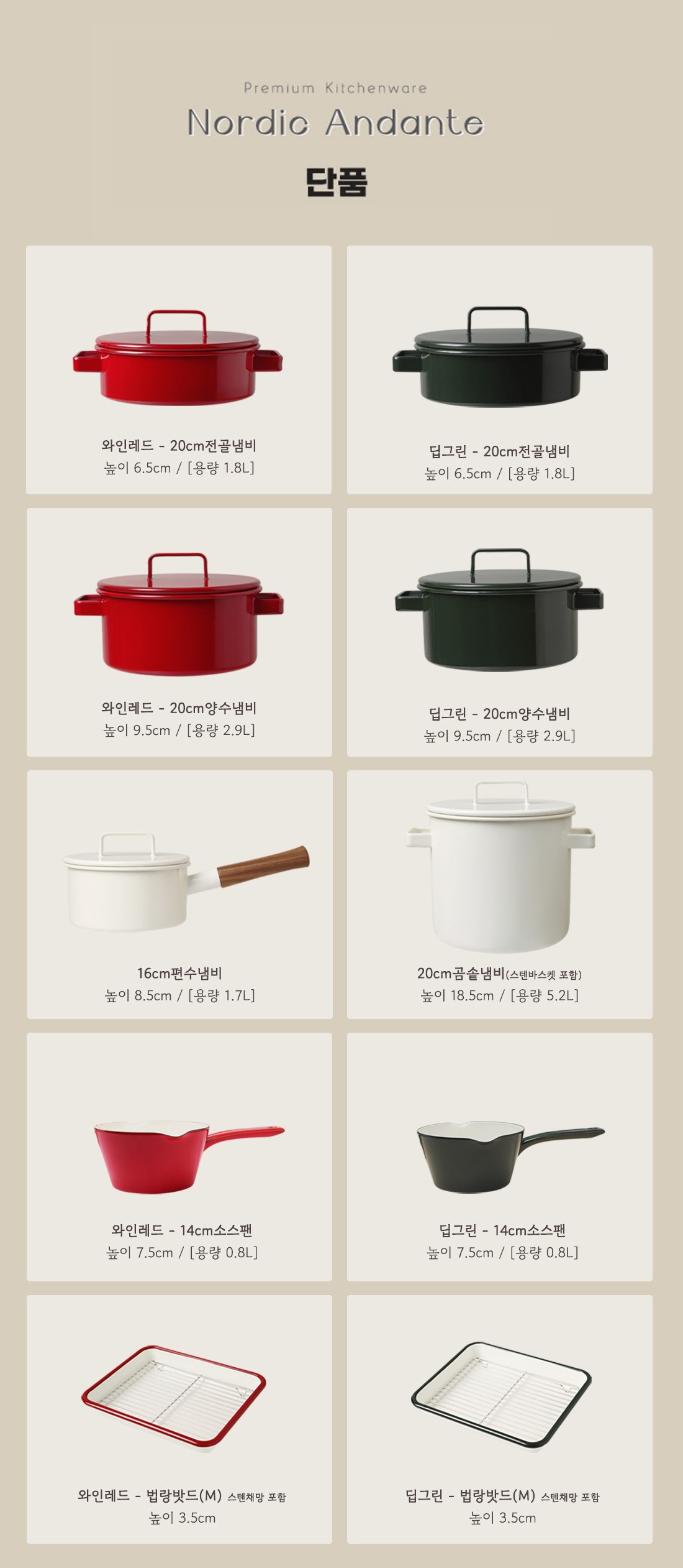 | 품명 및 모델명 | 에지리 노르딕 안단테 법랑 냄비세트 | 재질 | 본체, 뚜껑 : 법랑 | 거치망, 찜 바구니 : 스테인레스제 |