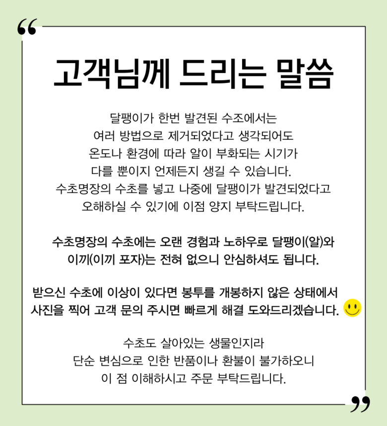 | 소비자상담 관련 전화번호 | 수초명장 010-7286-8775 09:00~18:00 | ||