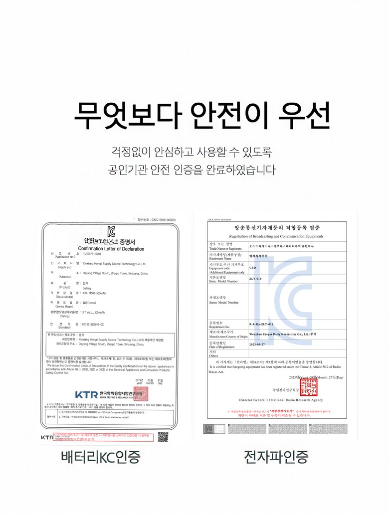 | 정격전압, 소비전력 | 3.7 Vd.c.,500mAh | 출시년월 | 2025/04/24 |