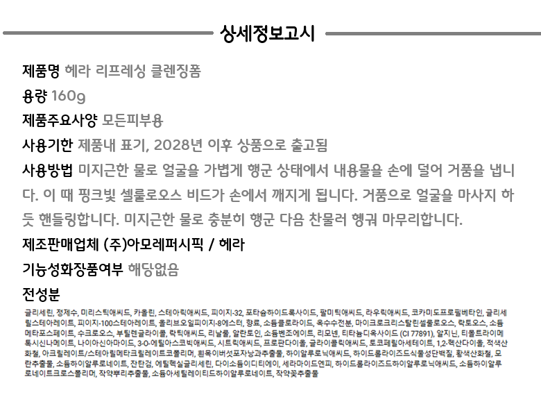 | 화장품제조업자, 화장품책임판매업자 및 맞춤형화장품판매업자 | 상품 상세페이지 참조 | 제조국 | 상품 상세페이지 참조 |