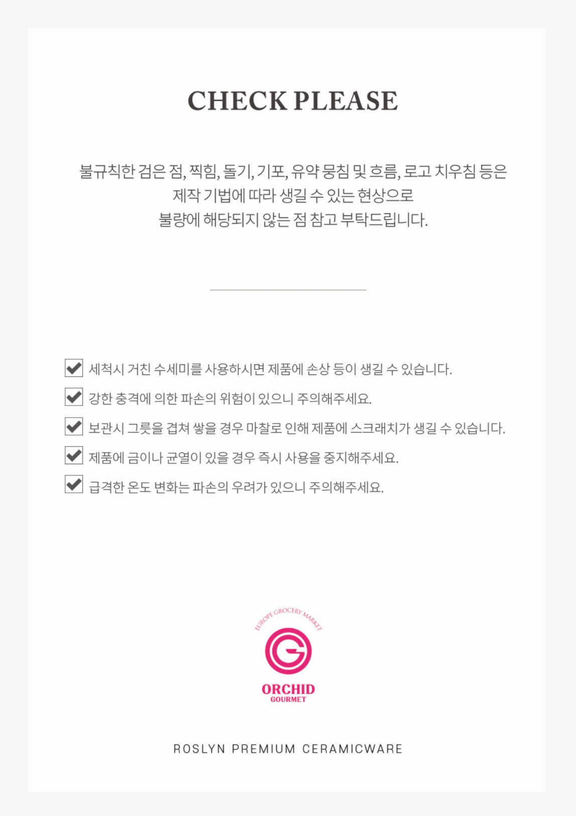 | 출시년월 | 2024.03 | 제조자(수입자) | 타원접시,파스타볼,소스볼: WALIK(CHAOZHOU)TECHNOLOGY CO.,LTD. / (주)성진코아, 와인잔: 창사이원컴퍼니 / (주)성진코아 |