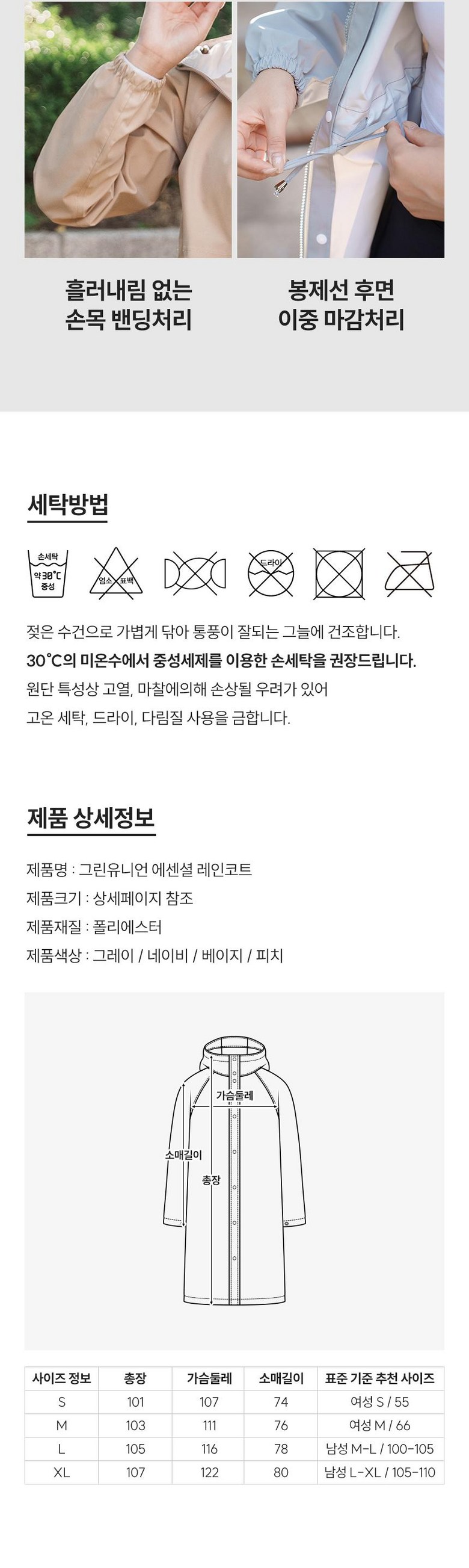 | 품명 및 모델명 | 그린유니언 에센셜 레인코트 | 인증/허가 사항 | 해당사항 없음 |