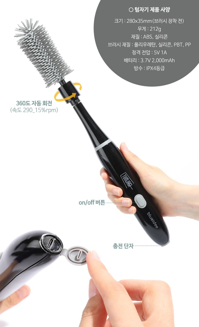 | 품명 및 모델명 | [SUNRISE MALL] 텀자기 전동 식기 세척 브러쉬 360도 회전 전동솔 전동세척솔 주방세척솔 텀블러 물병 젖병 컵 잔 식기 주전자 주방브러쉬 | 재질 | 상품 상세페이지 참조 |