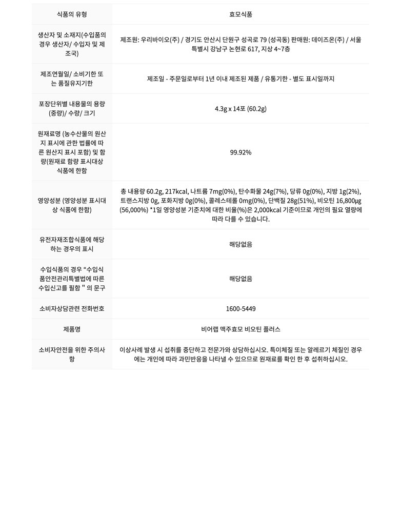| 제조연월일, 소비기한 또는 품질유지기한 | 상품 상세페이지 참조 | 세부 품목군별 표시사항 | 상품 상세페이지 참조 |