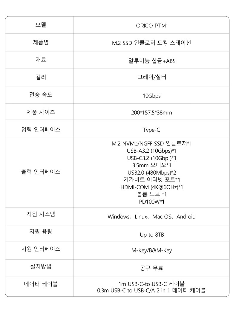 | 품명 및 모델명 | 오리코 PTM1 | 인증/허가 사항 | 오리코 PTM1 |