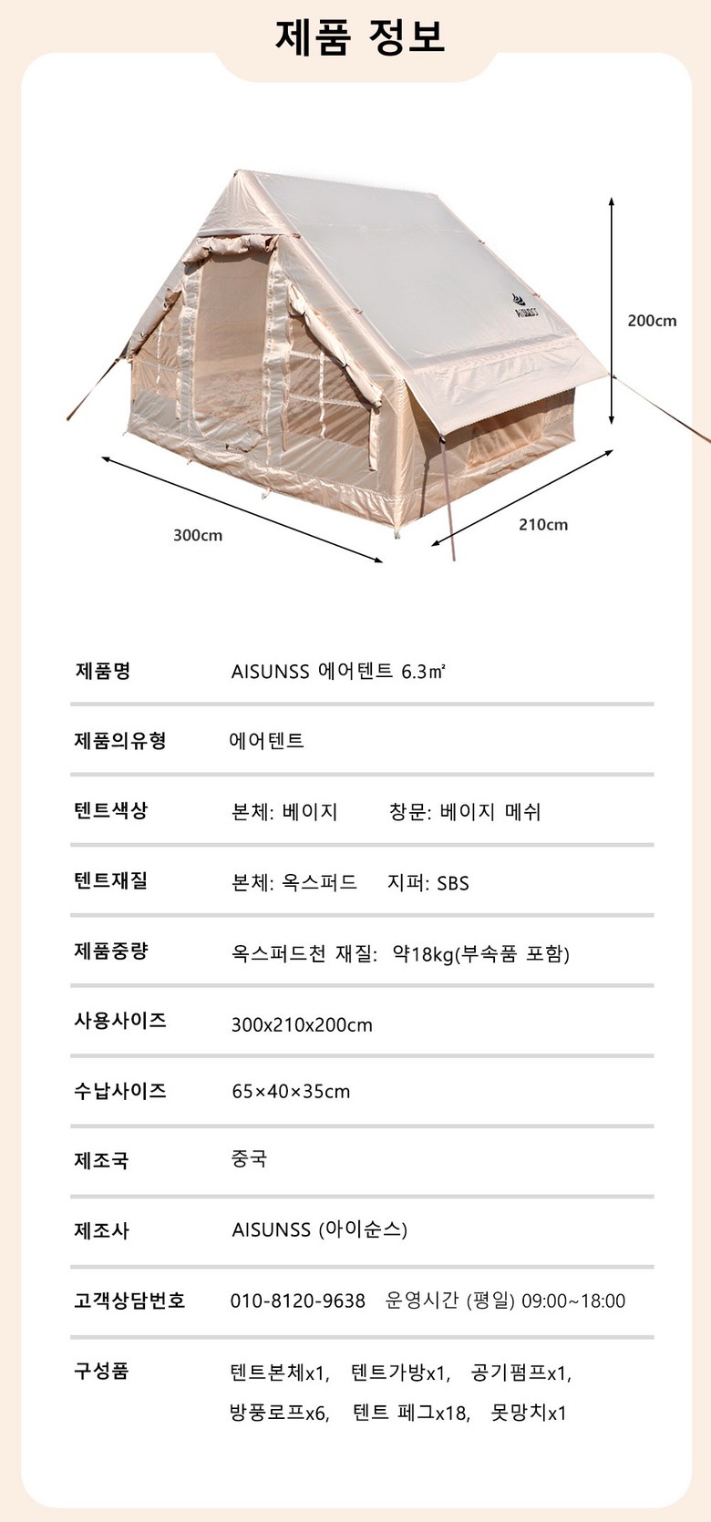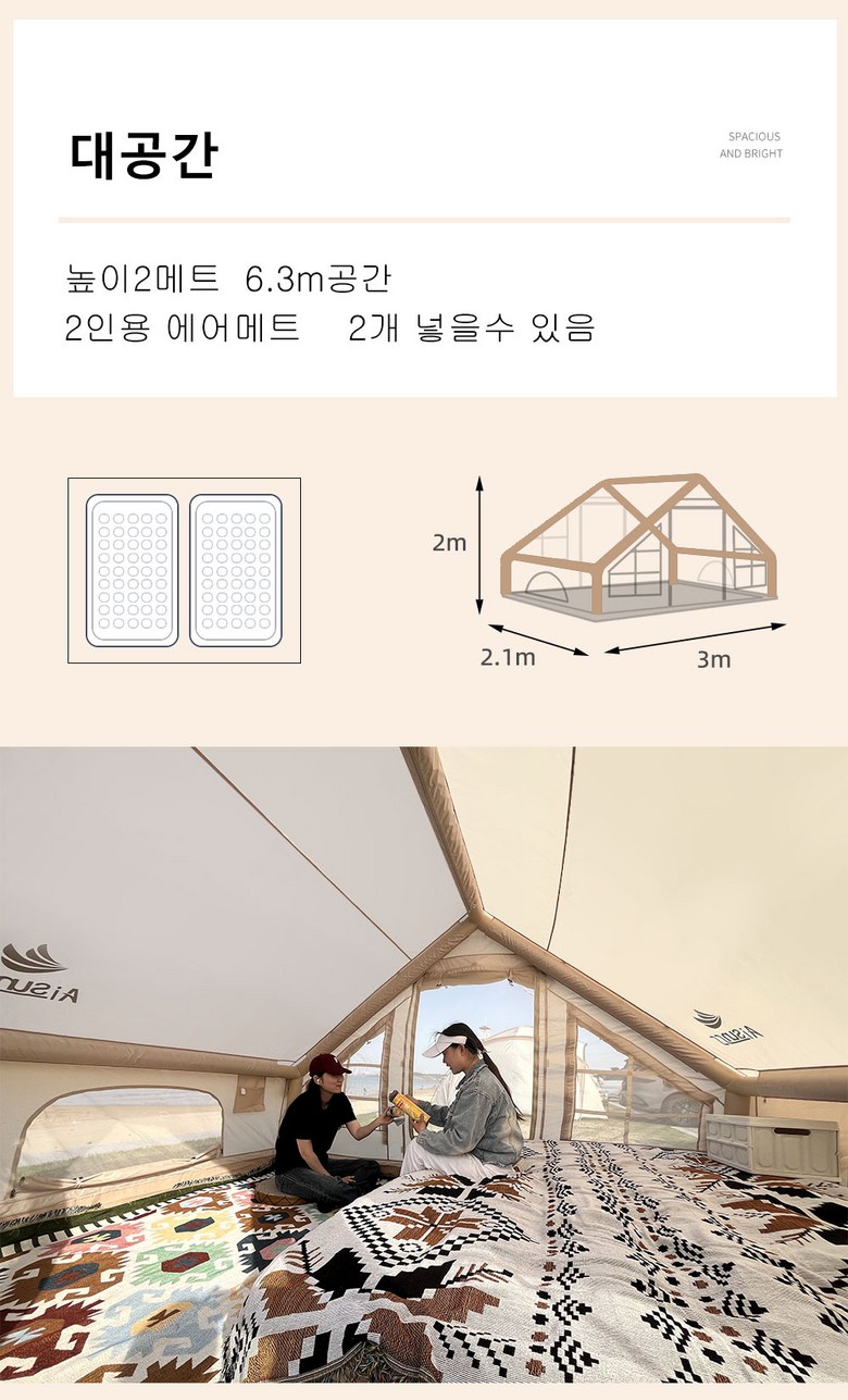 | 품명 및 모델명 | 아이순스 (AISUNSS) 에어텐트 | KC 인증정보 | 상품 상세페이지 참조 |