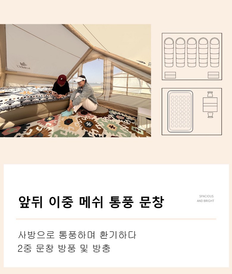 아이순스 에어텐트 캠핑텐트 원터치텐트 감성 글램핑 텐트 가족텐트 거실형
