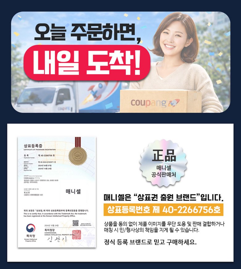 | 소비자상담 및 교환반품 문의 | 쿠팡고객센터 1577-7011 배송 및 환불/교환에 대한 문의는 마이쿠팡-고객센터 내 상담하기를 이용해주세요. | ||