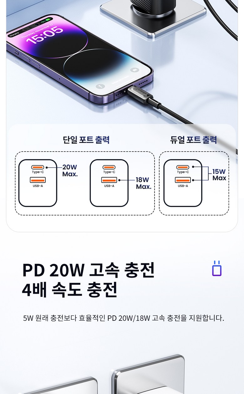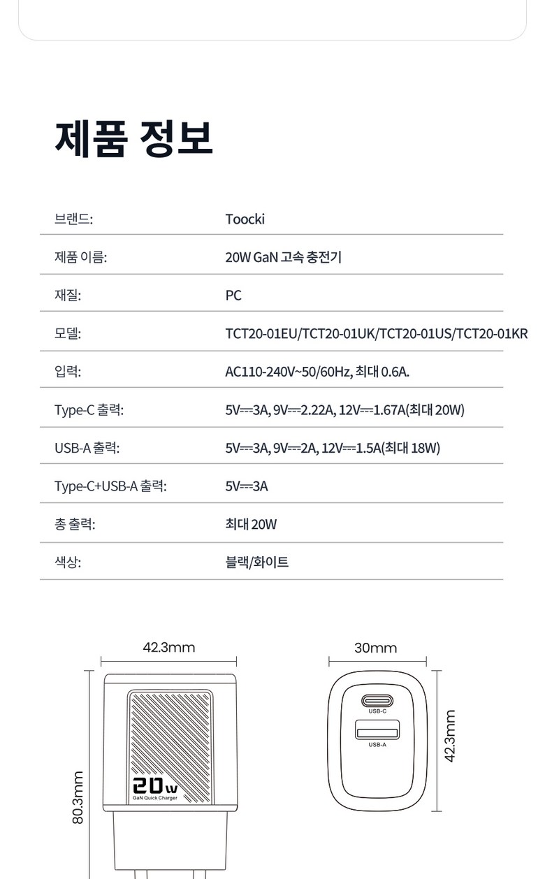 | 품명 및 모델명 | Toocki 20W 2포트 PD 고속충전기 (애플 아이폰 호환) | KC 인증정보 | 상품 상세페이지 참조 |