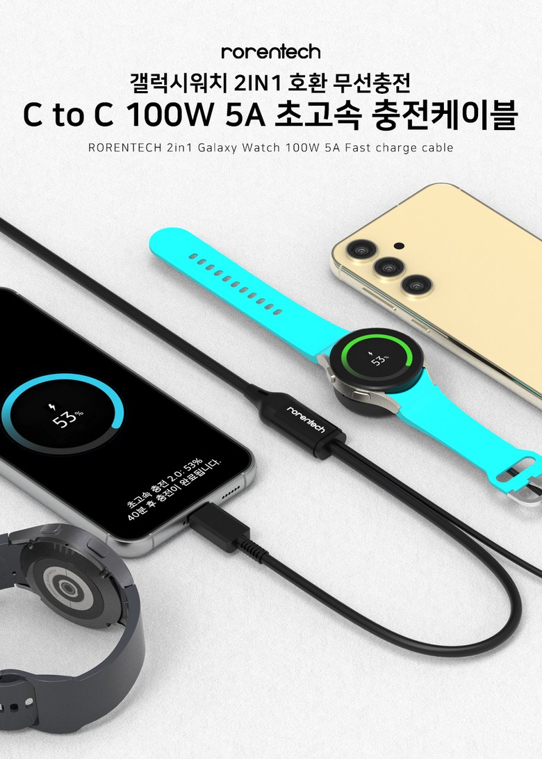 | 품명 및 모델명 | 로랜텍 흑돌 무선충전기 케이블 (삼성 갤럭시워치 6 5 Pro 4 클래식 3 액티브 2 1 호환) | 인증/허가 사항 | 상품 상세페이지 참조 |