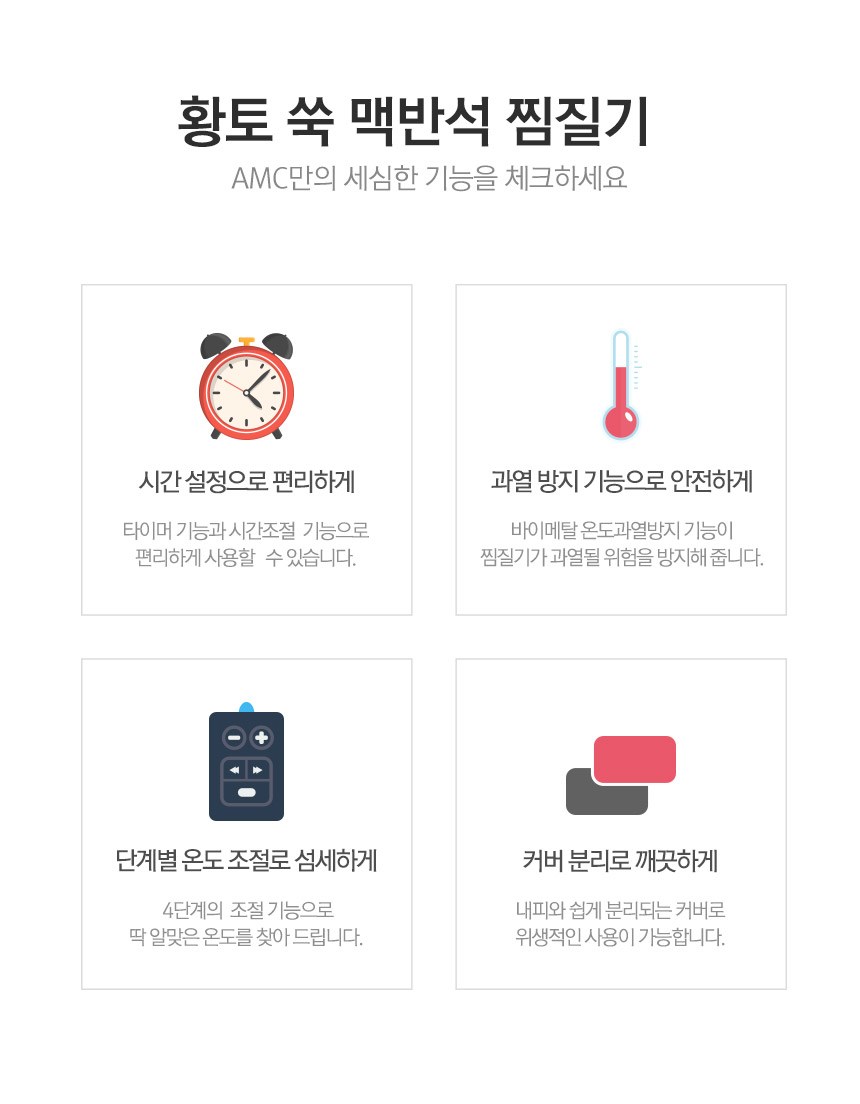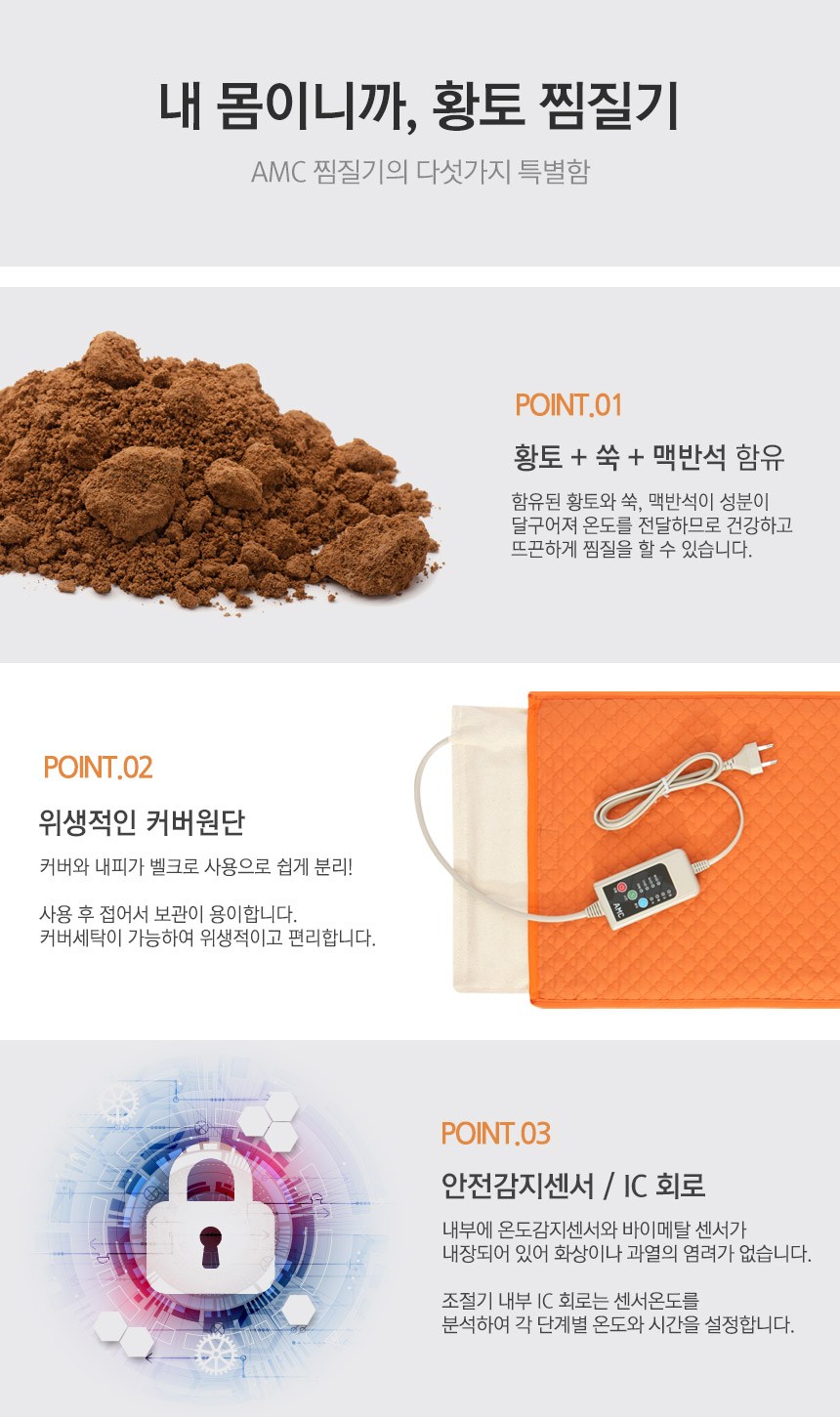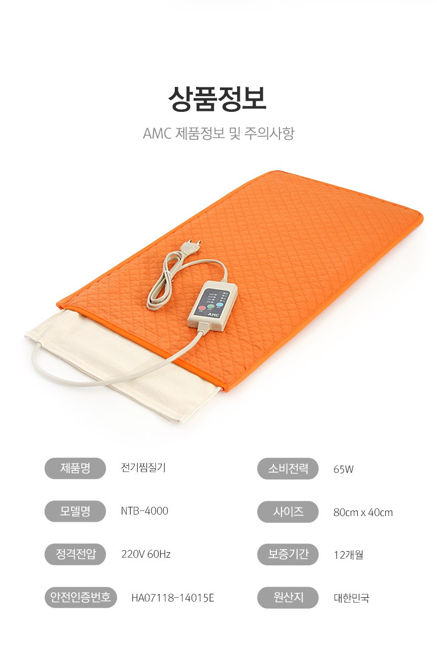 | 품명 및 모델명 | AMC 황토+쑥+맥반석 프리미엄 찜질기 특대형 (황토퀼팅) NTB-4000 | KC 인증정보 | HA07118-14015E / MSIP-REM-stk-SKT-100 |